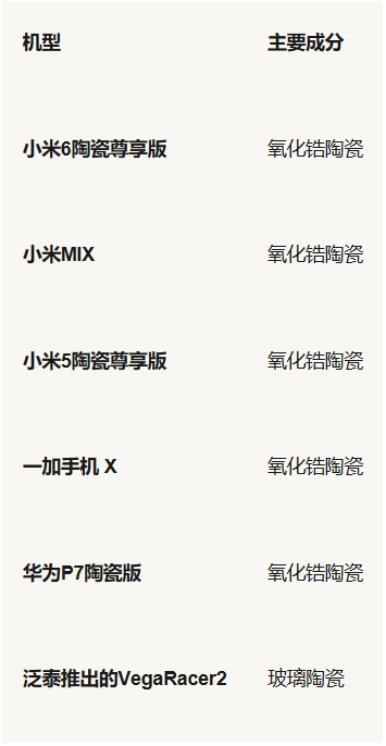 手機上陶瓷有哪些?
