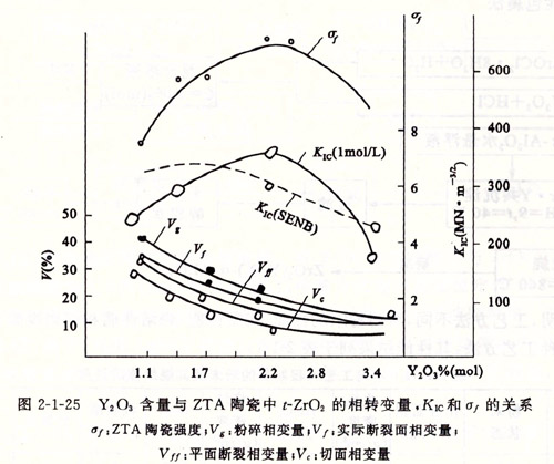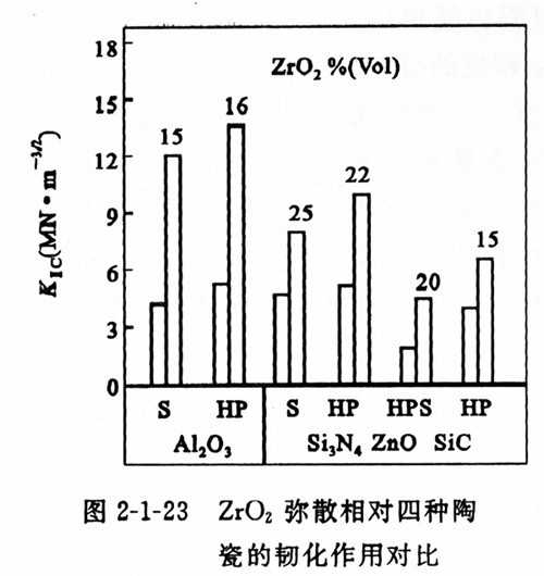 在用氧化鋯增韌的陶瓷材料中,以氧化鋯增韌氧化鋁陶瓷的效果最佳。如圖2-1-23所示。